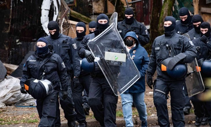 وهج 24 : خرج عدة آلاف من الأشخاص إلى الشوارع مساء الجمعة احتجاجا على إخلاء مخيم عشوائي يسكن فيه منتمون إلى الطيف اليساري بميدان “كوبي بلاتس” في حي وسط برلين.