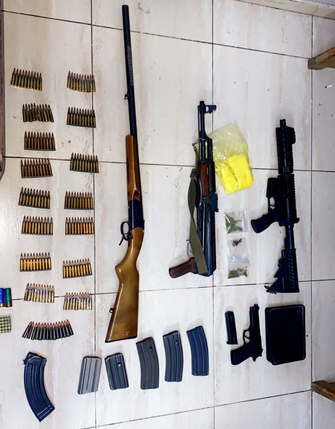 وهج 24 : قال الناطق الاعلامي باسم مديرية الامن العام ان ادارة مكافحة المخدرات ومن خلال حملاتها المستمرة على تجار ومروجي المواد المخدرة فقد نفذت امس عدة مداهمات على تجار ومروجي المواد المخدرة في مختلف محافظات المملكة وألقت القبض خلالها على 9 مروجين وتجار للمواد المخدرة وضُبطت بحوزتهم كميات كبيرة ومتفرقة من المواد المخدرة وستة اسلحة نارية اثنان منها أوتوماتيكية.