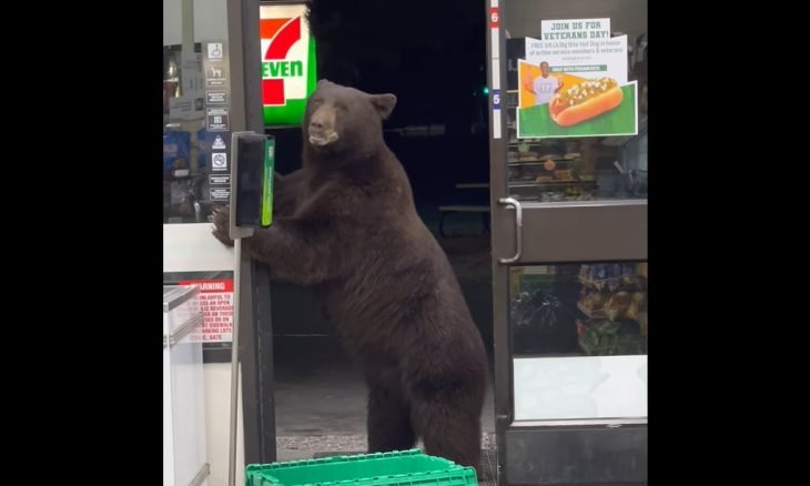 وفتح الدب الباب بهدوء وأدخل جسده الضخم من باب المتجر حيث سمعت أصوات الموظفة وصرخاتها في محاولة لإخراجه لكنه تابع تفقده المكان غير مكترث بكل تلك الصرخات، وفق وكالة “سبوتنيك”.