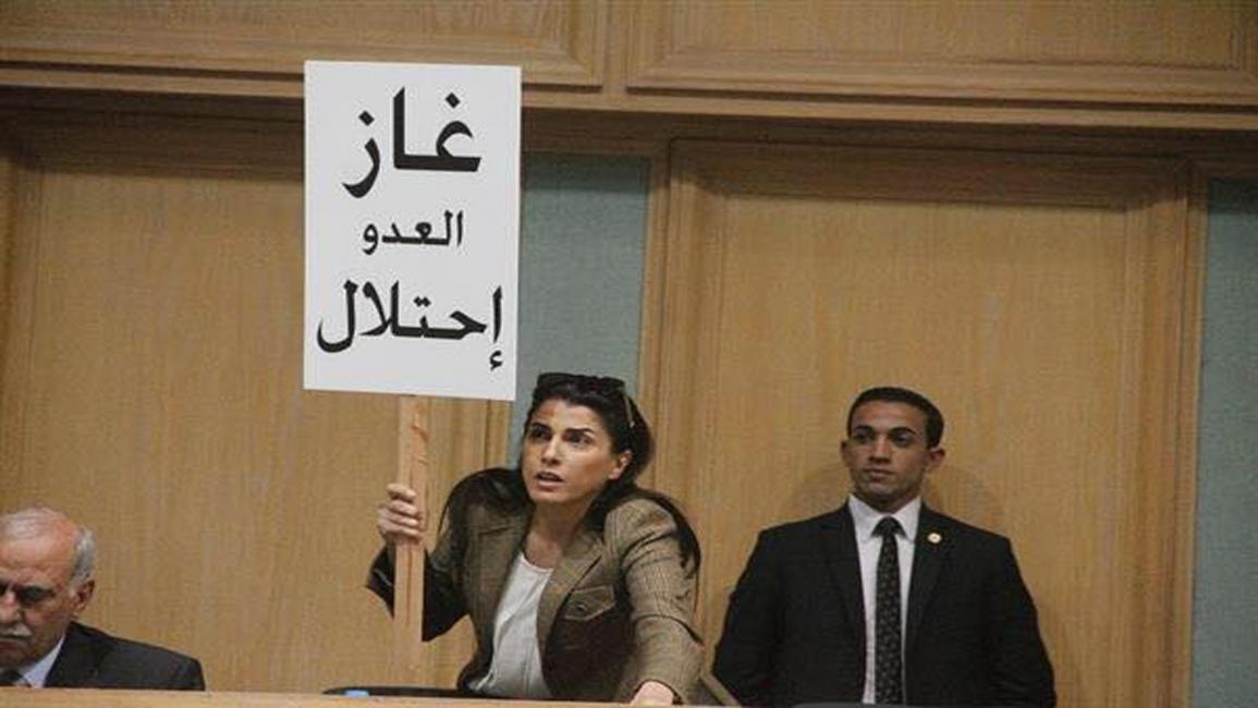 وذكرت مجلس النواب الحالي بأنه مجلس النواب الأردني السابع عشر بالرغم من ضعفه صوت بالأغلبية ضد اتفاقية الغاز ووقعت تلك الاتفاقية المشؤمة بعد حل المجلس في ذلك الوقت مطالبة النواب بأن يكون لهم موقف واضح وصريح.