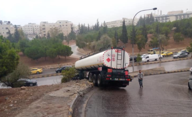 وهج 24 : وقع حادث انزلاق لصهريج بترول صباح اليوم الأربعاء على جسر الظاهر بيبرس باتجاه شارع الأردن، حيث تسبب بخروج الصهريج عن مساره.