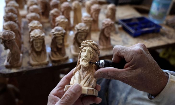 وهج 24 :تماثيل من خشب الزيتون يصنعها فنان فلسطيني في ورشته في بيت لحم في الضفة الغربية استعداد لموسم عيد الميلاد.