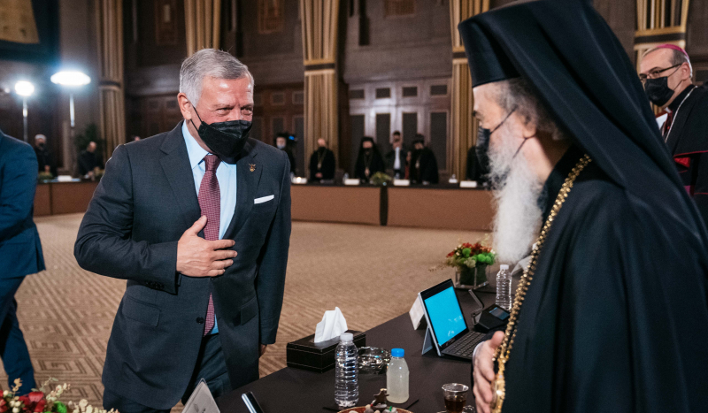 وقال البطريرك ثيوفيلوس “لقد جسدتم يا جلالة الملك اهتمامكم في المقدسات بالقدس من خلال تبرعاتكم السخية، ولن ننسى ما قدمتموه لترميم قبر السيد المسيحِ في كنيسة القيامة، وترميم كنيسة الصعود على جبل الزيتون”.