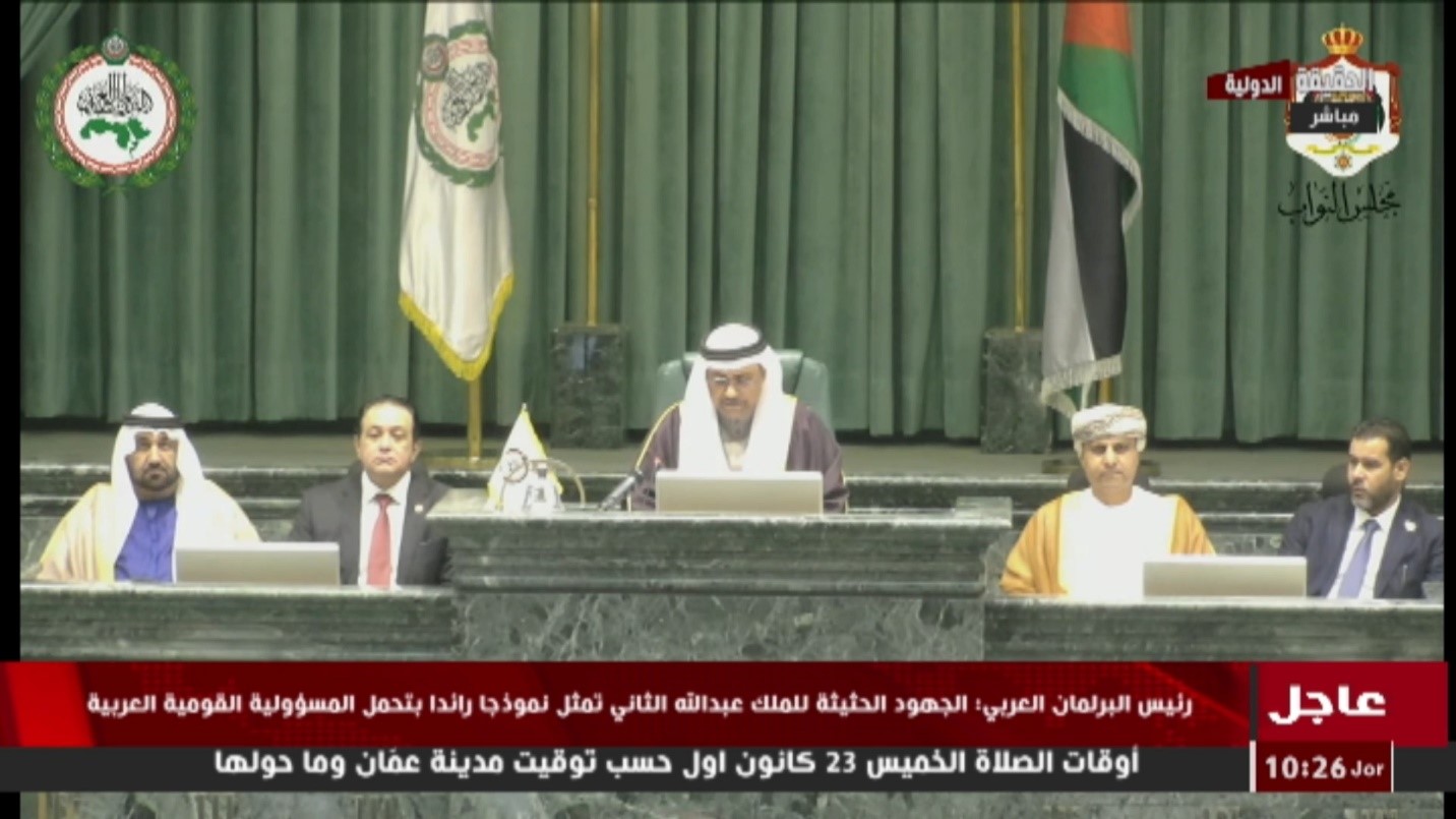 وهج 24 : افتتح البرلمان العربي، الجلسة الثانية لدور الانعقاد الثاني من الفصل التشريعي الثالث في مجلس الأمة في عمّان، برئاسة رئيس البرلمان عادل بن عبد الرحمن العسومي.