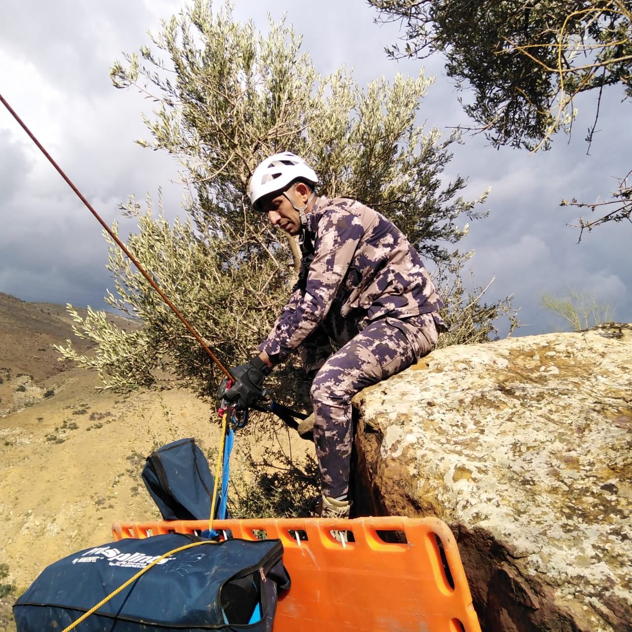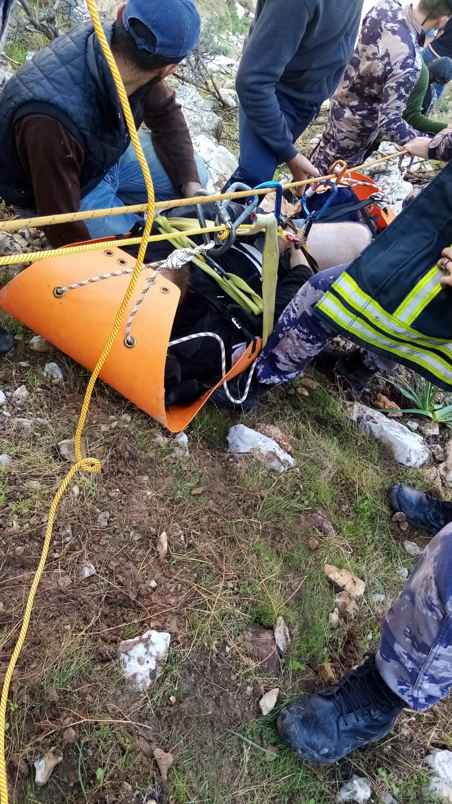 مضيفا أنه وبعد مسير على الأقدام تمكن فريق الإنقاذ من الوصول إليه وتبين أنه قد سقط عن مقطع صخري يزيد ارتفاعه عن (٢٠) متر ويعاني من كسر بالقدم اليسرى حيث تم تقديم الإسعافات الأولية اللازمة للمصاب في موقع الحادث وإنزاله عن المقطع باستخدام المعدات المتخصصة .