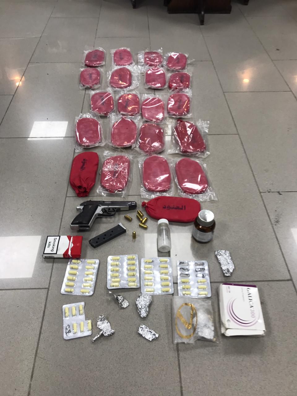 ** ضبط 21 كف حشيش وكمية من الحبوب المخدرة بحوزة مروجين وتجار للمواد المخدرة في محافظة اربد.