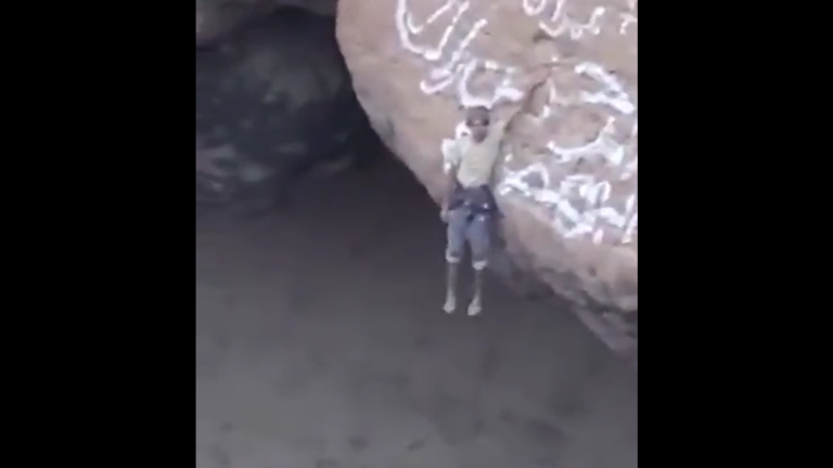 الشرق الأوسط نيوز : انتشر في مواقع التواصل الاجتماعي، مقطع فيديو يظهر شابا يمنيا وهو يتدلى في فوهة بركان دمت، في مشهد يحبس الأنفاس.