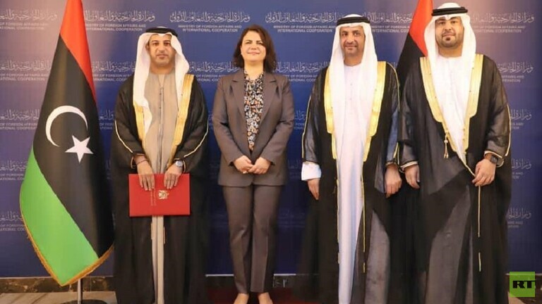 وأفادت الخارجية الليبية بأنه تم التأكيد خلال اللقاء على أهمية الدفع بالتعاون الاقتصادي والطاقة المتجددة والاستثمارات، إضافة إلى تفعيل اللجنة المشتركة بين البلدين، والإستفادة من التجربة الإماراتية في مجال التطوير والإعمار.
