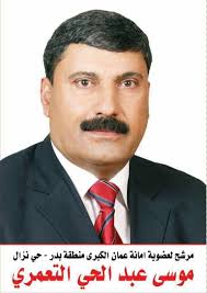 المرشح موسى عبدالحي التعمري لعضوية مجلس أمانة عمان On يناير 25, 2022 Share المرشح موسى عبدالحي التعمري لعضوية مجلس أمانة عمان منطقة بدر/ نزال معكم وبكم ماضون Share FacebookTwitterGoogle+ReddItWhatsAppPinterestالبريد الإلكتروني