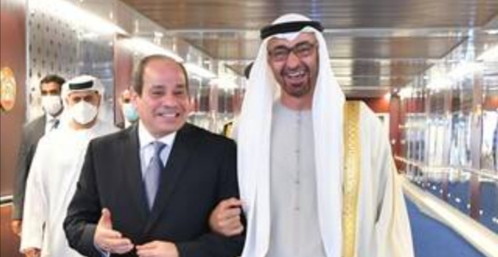 وظهر الرئيس المصري مع ولي عهد أبوظبي في مجموعة من الصور بابتسامات عريضة ومتبادلة خلال حديثهما.