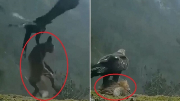 نسر يصطاد ذئباً ويطير به في السماء ـ فيديو