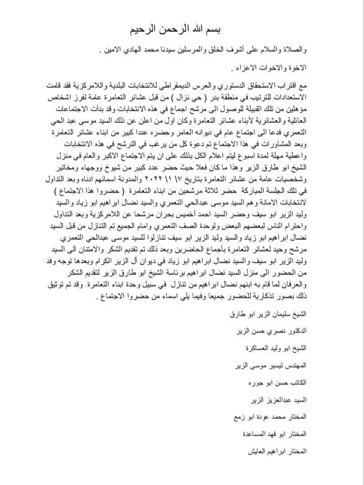 بيان هام لأبناء عشائر التعامره On فبراير 6, 2022 Share الشرق الأوسط نيوز : بيان هام لإبناء عشائر التعامره Share FacebookTwitterGoogle+ReddItWhatsAppPinterestالبريد الإلكتروني