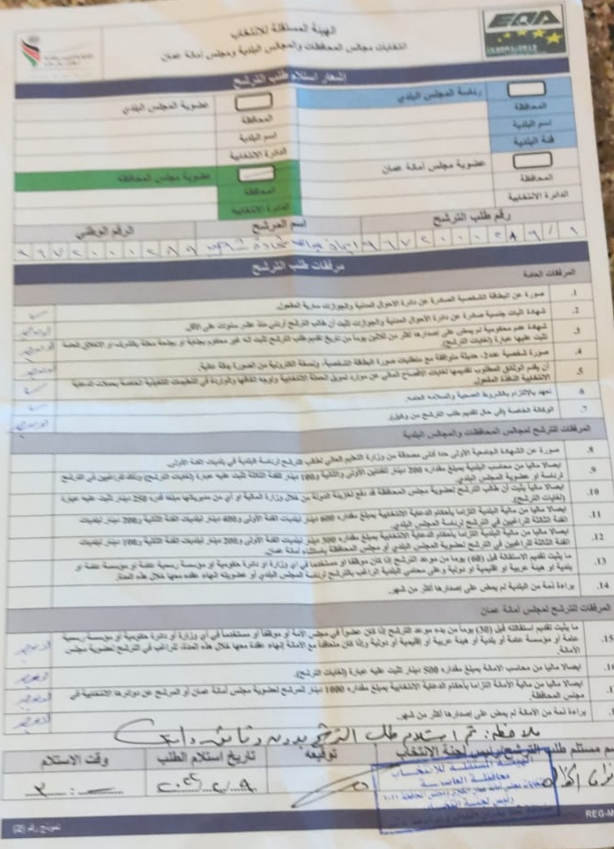 نسجل للهيئة المستقلة للانتخابات ورجال الامن العام موقفهم الايجابي واحاطة المرشحة وما تعرضت له باهتمام كبير
