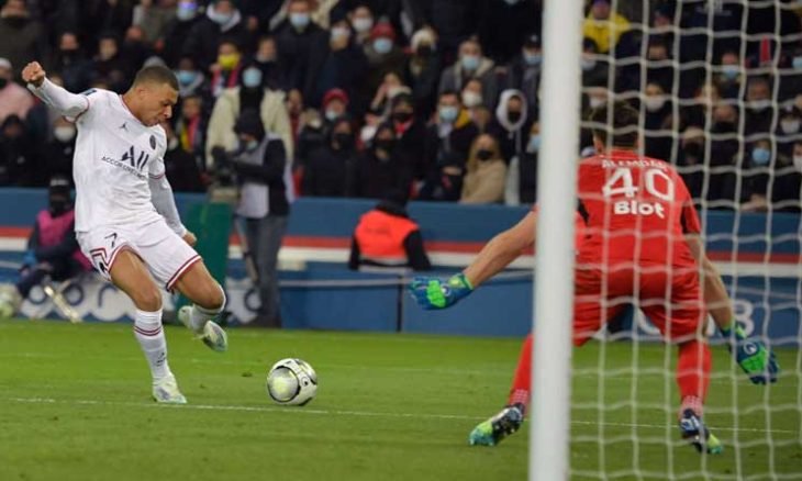 ومرر ليونيل ميسي إلى مبابي الذي أطلق تسديدة أرضية زاحفة من داخل منطقة الجزاء استقرت في المرمى.