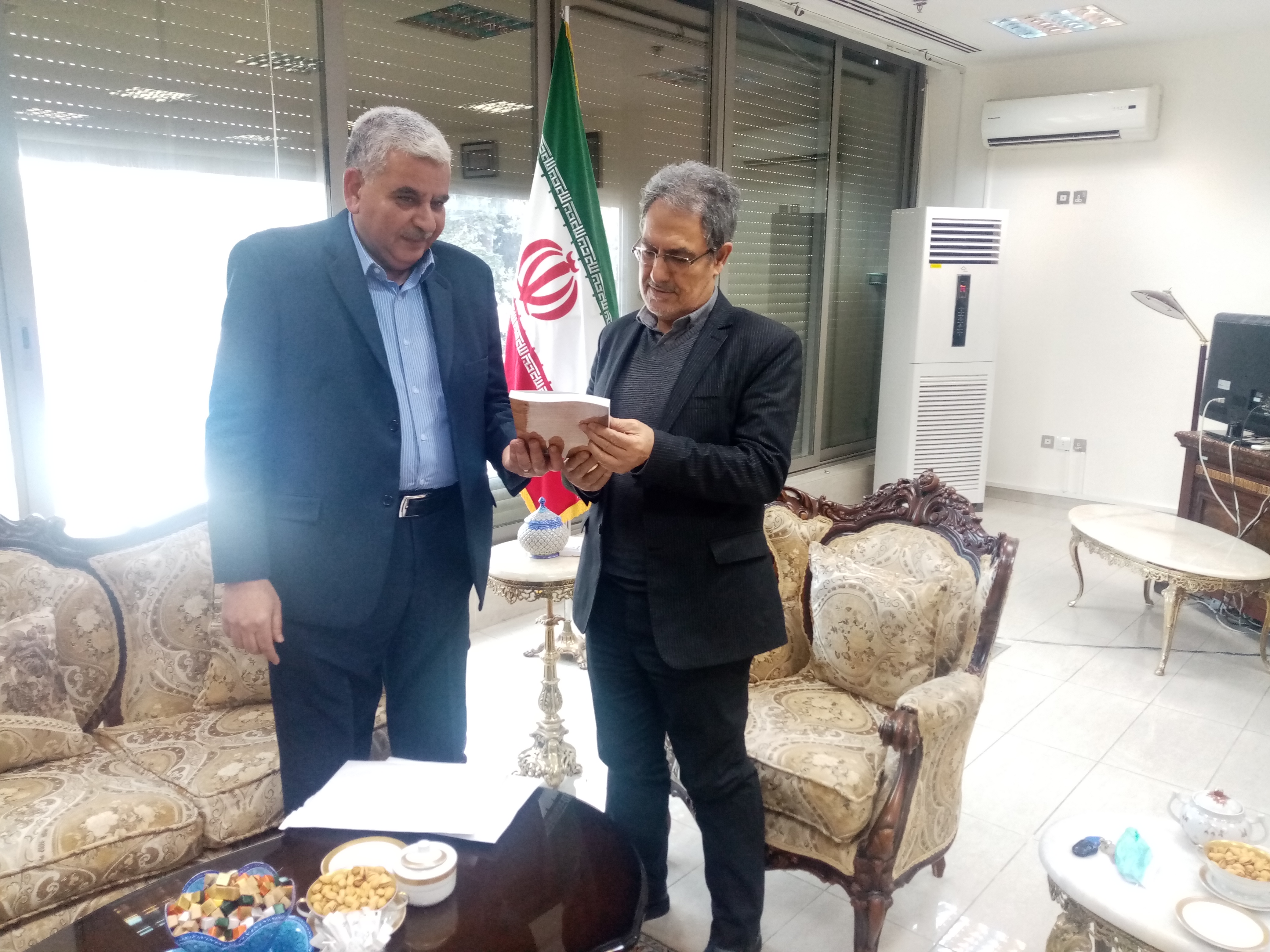 الشرق الأوسط نيوز – محيي الدين غنيم : تشرفت اليوم بلقاء سفير الجمهورية الإسلامية الإيرانية في عمان ، سعادة الأستاذ ” علي أصغر ناصري ” ، حيث إتسم هذا اللقاء بالدفء الأخوي والحديث عن تاريخ العلاقات الأردنية – الإيرانية والعلاقات الطيبة ما بين الشعبيين الشقيقين ، وفي نهاية اللقاء المتميز قمت بتقديم الكتاب الأول لكريمتي ” زينه ” لسعادته