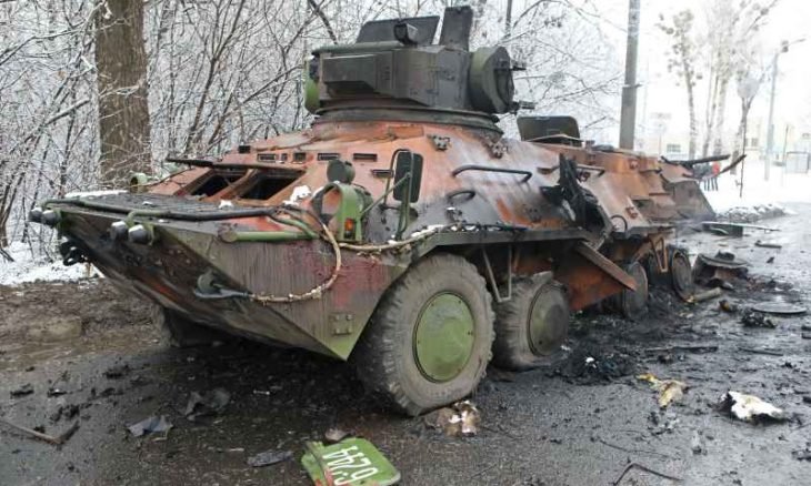 وأظهرت مقاطع مصورة بثها أنطون هيراشينكو، مستشار وزير الداخلية الأوكراني عبر تيليغرام، ودائرة الاتصالات الخاصة وحماية المعلومات التابعة للدولة في أوكرانيا، عدة مركبات عسكرية خفيفة تتحرك على طول أحد الشوارع ودبابة محترقة بشكل منفصل.