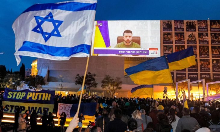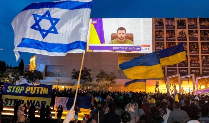 وطالب زيلينسكي تل أبيب بـ”اتخاذ موقف الآن، مساند لأوكرانيا في مواجهة روسيا”.