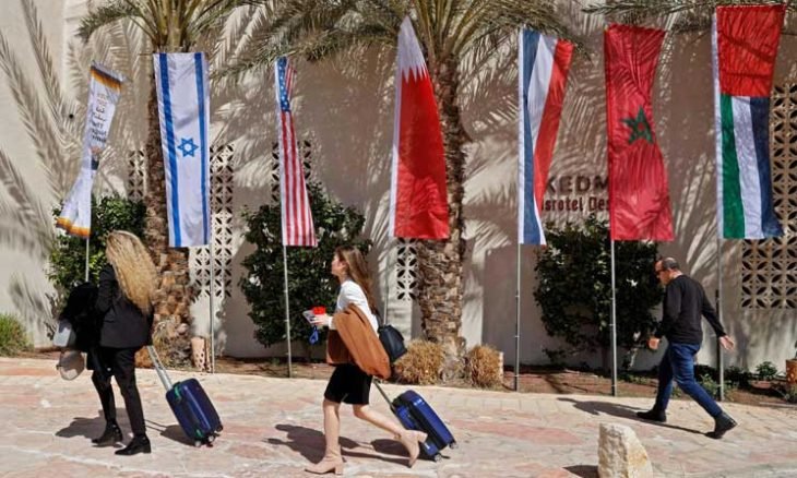 وتقول الصحيفة إن مشاركة وزير الخارجية المصري هي إشارة عن تغلب إسرائيل عن عزلتها. فقد كانت حتى عام 2020 مع الأردن هما الدولتان اللتان وقعتا اتفاقيات سلام معها. وزار بينيت وعدد من وزرائه الإمارات والبحرين، وهو أمر لم يكن أحد يتخيله. والتقى في شرم الشيخ مع محمد بن زايد ولي عهد الإمارات والرئيس المصري عبد الفتاح السيسي. والأهم من ذلك وقعت وزارة الدفاع الإسرائيلية مذكرتي تفاهم عسكري مع البحرين والمغرب بحيث يسهل عليهما التعاون والتنسيق العسكري. وزادت التعاون التجاري إلى مليار دولار، أي بنسبة 20% منذ عام 2020. وتتعاون إسرائيل مع دول المنطقة على نظام اتصالات بحيث يسهل على الدول تحذير بعضها من المسيرات الإيرانية أو تلك التي تطلقها الجماعات الوكيلة عنها.
