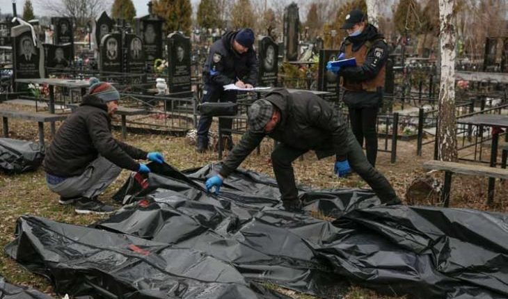 واعتبرت الناطقة باسم وزارة الخارجية الروسية ماريا زاخاروفا أن وسائل الإعلام الغربية “متواطئة” في هذا “التزوير” واتّهمت الطرف الأوكراني بأنه إما أعدم مدنيين في هذه المدينة أو نقل جثثًا لأغراض الفبركة.