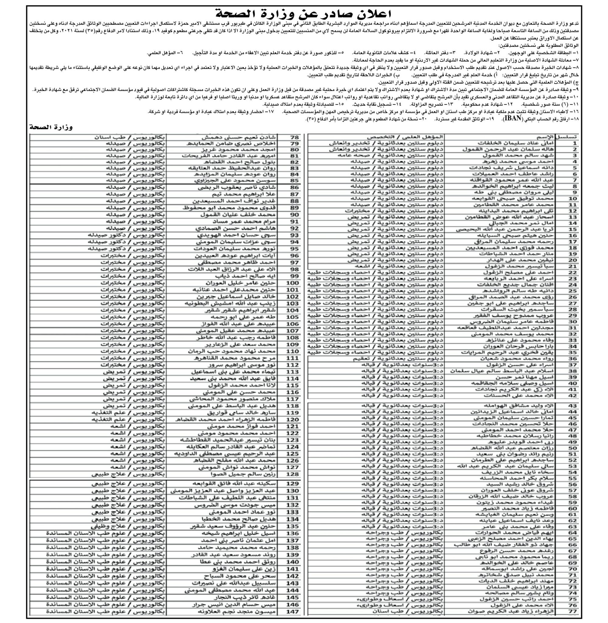 الصحة” تدعو 147 مرشحا للتعيين – أسماء