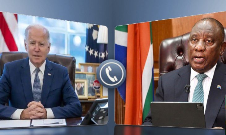 وأشارت وسائل إعلام محلية إلى أن بايدن هو من بادر الى إجراء المكالمة الهاتفية مع بريتوريا.