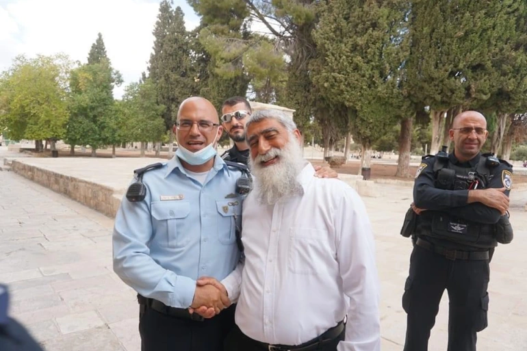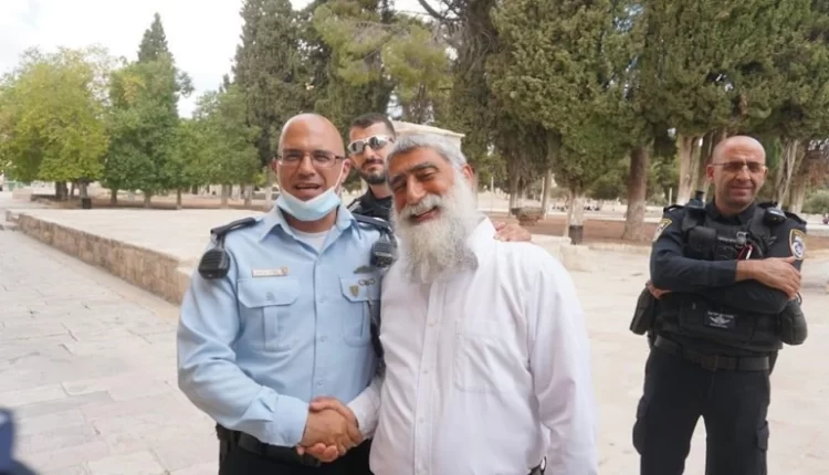 أما خلال عيد المظلة اليهودي (سوكوت) في سبتمبر/أيلول الماضي، فقد نشرت منصة “منهيلت هار هبايت” -أي: إدارة جبل الهيكل- صورة تجمع بين قائد شرطة الاحتلال في الأقصى آرون بيتون والحاخام الرابي شموئيل مورينو، وهما يتصافحان بحرارة داخل المسجد الأقصى، وكتب في المنشور أنهما “يتمنيان عطلة سعيدة على جبل الهيكل”.