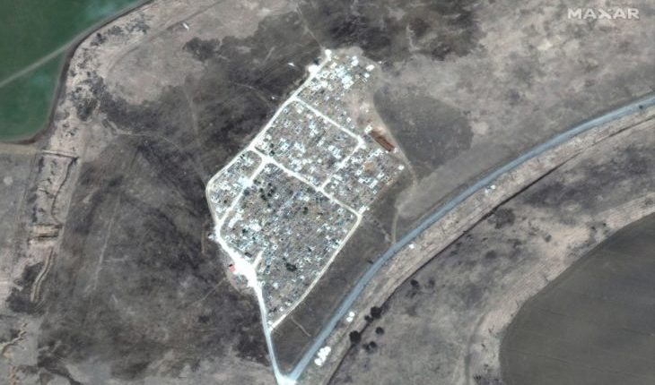 ونشر مجلس المدينة صور أقمار صناعية التقطتها شركة “بلانت لابز” تظهر ما قال إنها مقبرة جماعية فيها جثث ما لايقل عن 1000 من مواطني ماريوبول منتشرين على مساحة بطول 45 مترا وعرض 25 مترا.
