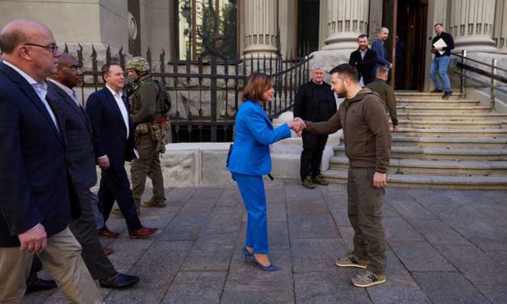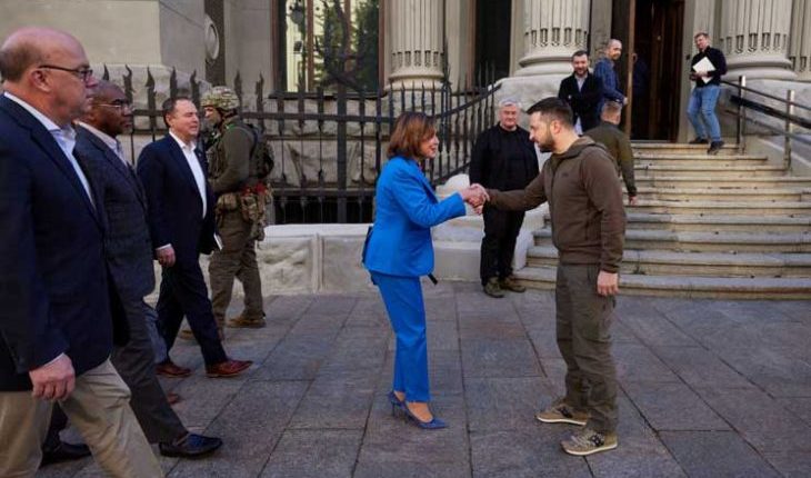 وكتب زيلينسكي على موقع تويتر اليوم الأحد: “التقيت مع رئيسة مجلس النواب نانسي بيلوسي في كييف”.