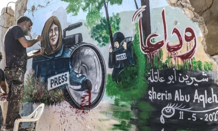 الشرق الأوسط نيوز : ودّع الفنان السوري عزيز أسمر، الصحافية الفلسطينية مراسلة قناة “الجزيرة” القطرية شيرين أبو عاقلة التي استشهدت برصاص الاحتلال الإسرائيلي، من خلال رسم صورتها على جدران أحد المباني أو ما يعرف بالغرافيتي.