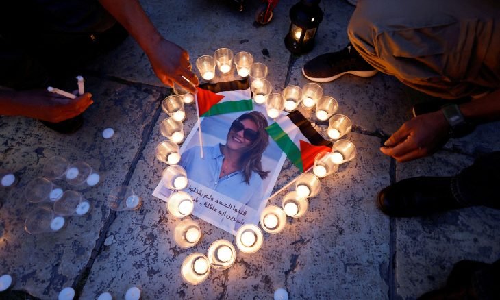 وكانت أبو عاقلة، مراسلة قناة الجزيرة، تغطي عملية مداهمة إسرائيلية لبيت في مدينة جنين بالضفة الغربية عندما أُطلقت النار عليها وقُتلت قبل نحو أسبوع. وقال شهود عيان إنها قتلت برصاص الجيش الإسرائيلي، الذي ألقى اللوم بداية على مسلحين فلسطينيين، ووزع لقطات تظهر مسلحا، ظهر لاحقا أنه لم يكن مسؤولا. قبل أن يعترف الجيش الإسرائيلي أن الرصاصة أُطلقت من جانبه.