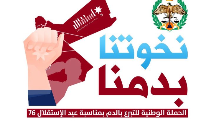 الشرق الأوسط نيوز : تطلق مديرية الأمن العام يوم غد الأربعاء 25-5-2022 حملة وطنية للتبرع بالدم في كافة محافظات المملكة تحت شعار “نخوتنا بدمنا” .