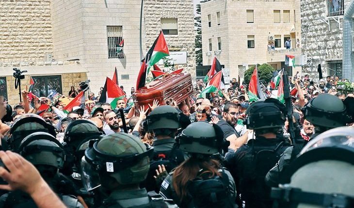 وفي 13 مايو/آيار الجاري، اعتدت الشرطة الإسرائيلية بالهراوات والرصاص المعدني المغلف بالمطاط على مشيعي جنازة مراسلة قناة “الجزيرة القطرية، أثناء محاولتهم الخروج من مستشفى مار يوسف “الفرنسي”، بحي الشيخ جراح بالقدس الشرقية.