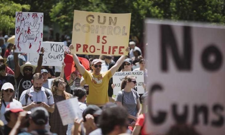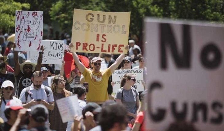 وردد المحتشدون هتافات: “احموا أطفالنا، وليس البنادق!”، ورفعوا لافتات كتب عليها: “لا مزيد من الأفكار والصلوات” و”هوايتكم لا تساوي أرواح أطفالنا”.