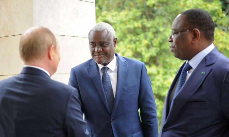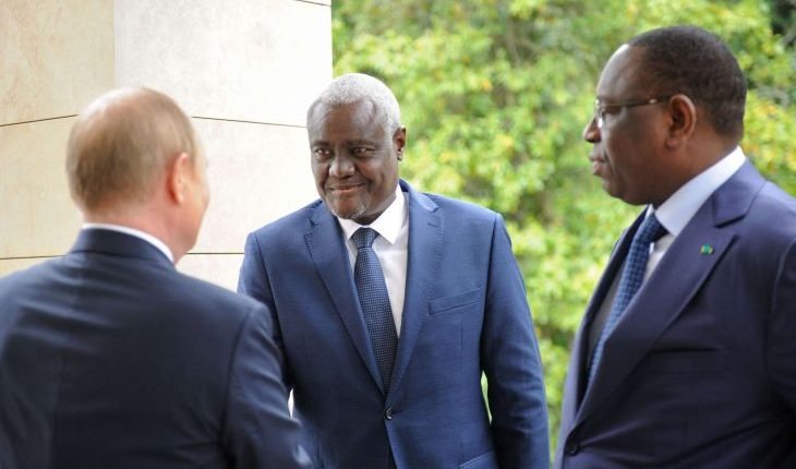 وعلى ضوء هذا، تحرك الاتحاد الإفريقي نحو روسيا لمعالجة هذا الملف الشائك الذي يهدد استقرار القارة السمراء برمتها، وحل رئيس الاتحاد الإفريقي ماكي سال الذي هو رئيس السنغال رفقة رئيس المفوضية الإفريقية موسى فكي محمد وأجريا مباحثات مع الرئيس الروسي فلاديمير بوتين في سوتشي الجمعة من الأسبوع الجاري. وحصل الاتحاد الإفريقي على تعهد من الرئيس بوتين بالاستعداد لتصدير الحبوب سواء من روسيا أو أوكرانيا علاوة على تأمين الملاحة في البحر الأسود.