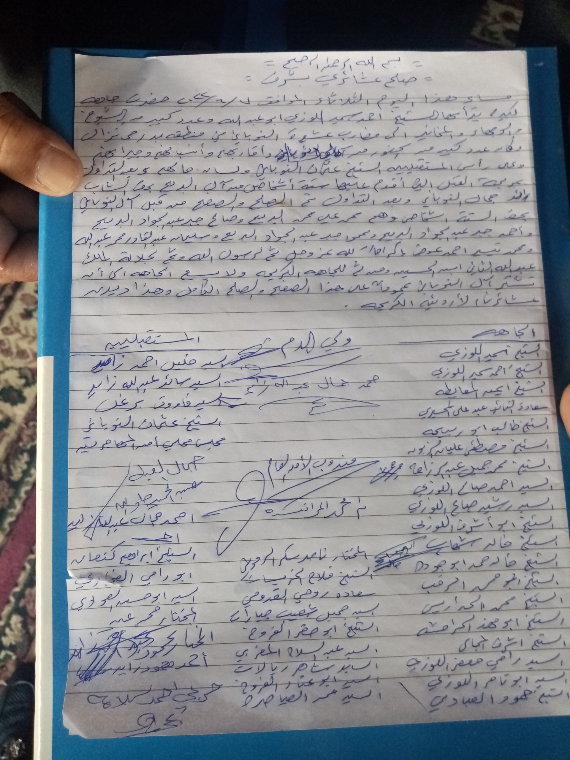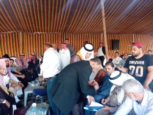 الشرق الأوسط نيوز – من عمان – محيي الدين غنيم : توجهت مساء الثلاثاء الموافق 7/6/2022 جاهة كبيرة ترأسها الشيخ ” احمد سمير اللوزي” وعدد كبير من الشيوخ والمخانير إلى مضارب عشيرة النوباني في منطقة بدر/ نزال، وكان على رأس المستقبلين الشيخ ” عثمان موسى زايد” ولسان حالهم بجريمة القتل التي اقدم عليها ستة أشخاص من آل البريدج بحق الشاب رائد جمال النوباني رحمه الله، وبعد التداول تم الصلح والصفح من آل النوباني بحق الستة اشخاص إكراما لله عز وجل ثم لرسول الله وثم لجلالة الملك عبدالله الثاني ابن الحسين حفظه الله ورعاه ومن ثم للجاهة الكريمة.