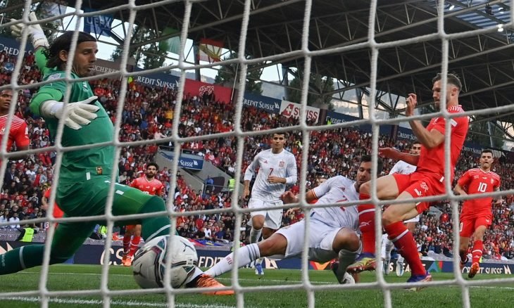 وسددت سويسرا مرة واحدة فقط على المرمى في المباراة بأكملها، لكنها كادت أن تحرز هدف التعادل بعد خطأين فادحين لإسبانيا قبل النهاية.