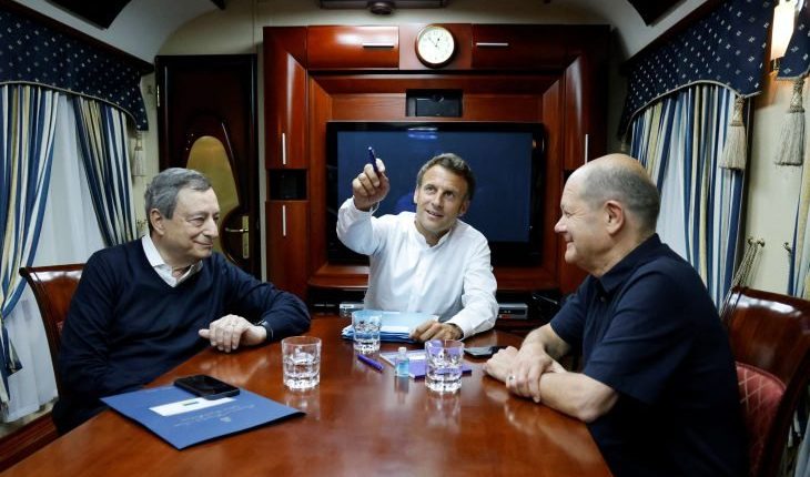 وذكر مكتب الرئيس الفرنسي في بيان، أن ماكرون وشولتس ودراغي، سافروا معا إلى كييف بالقطار.