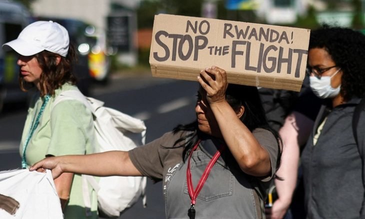 والطائرة، التي كان من المفترض أن تقلع مساء الثلاثاء، كانت ستقلّ 130 طالب لجوء، لكن هذا الرقم انخفض إلى صفر بعد سلسلة طعون قضائية تم تقديمها اتّهمت الحكومة بانتهاك حقوق الإنسان.