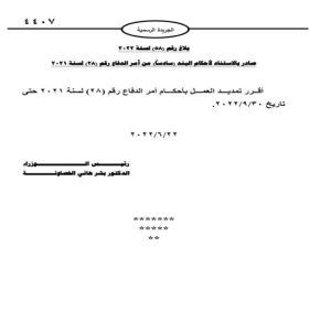 وأصدر رئيس الوزراء البلاغ رقم (58) لسنة 2022م لغايات تنفيذ القرار أعلاه، وسيُنشر في الجريدة الرَّسميَّة اليوم.