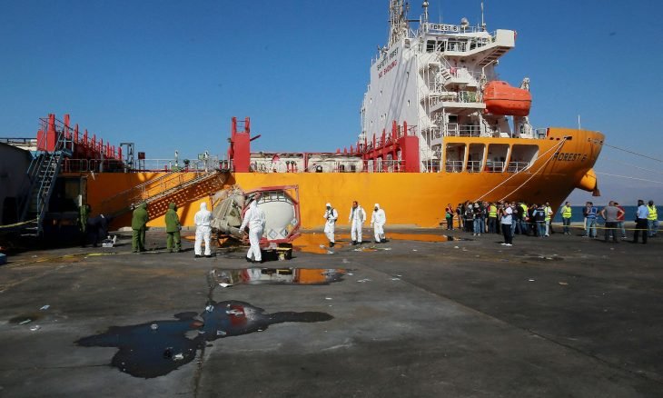 وأضاف “كان من المفترض أن يتم تحميل 18 حاوية من غاز الكلورين للباخرة، تم تحميل أربع وأثناء تحميل الحاوية الخامسة انقطع السلك وسقطت الحاوية ما أدى إلى تسرب الغاز وحدوث وفيات ومصابين”.