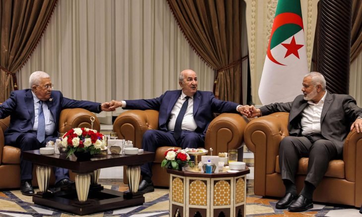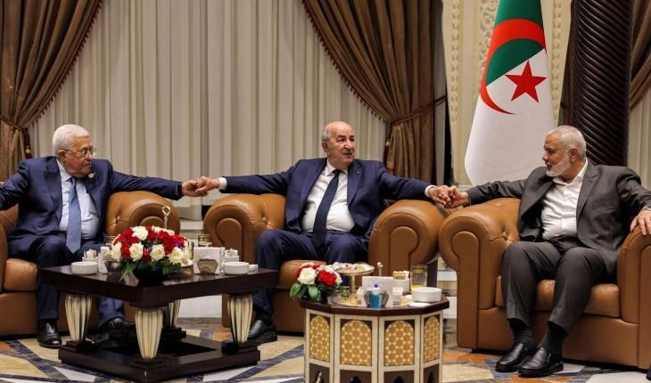 الشرق الأوسط نيوز : تفيد المعلومات الواردة من الجزائر بأن ملف المصالحة الفلسطينية الداخلية بين فتح وحماس لم يبحث خلال اللقاء الذي جمع الرئيس الجزائري عبد المجيد تبون والفلسطيني محمود عباس، ورئيس المكتب السياسي لحركة حماس إسماعيل هنية، بالقدر الذي ظهرت فيه الصور التي غطت الحدث.