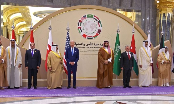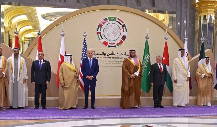 وأضاف بايدن في كلمة ألقاها خلال قمة مع ست دول خليجية ومصر والأردن والعراق في جدة أن واشنطن لن تنسحب وتترك فراغا تملأه روسيا أو الصين أو إيران.