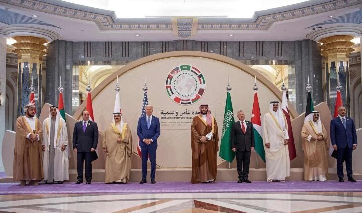 وفي كلمة أمام الرؤساء والملوك والمسؤولين الممثلين لست دول خليجية والأردن ومصر والعراق، شدّد بايدن على أنه أول رئيس أمريكي منذ هجمات 11 أيلول/سبتمبر 2001 يزور الشرق الأوسط دون أن يكون الجيش الأمريكي منخرطا في حرب في المنطقة، وقال “لن نتخلى (عن الشرق الأوسط) ولن نترك فراغًا تملؤه الصين أو روسيا أو إيران”.