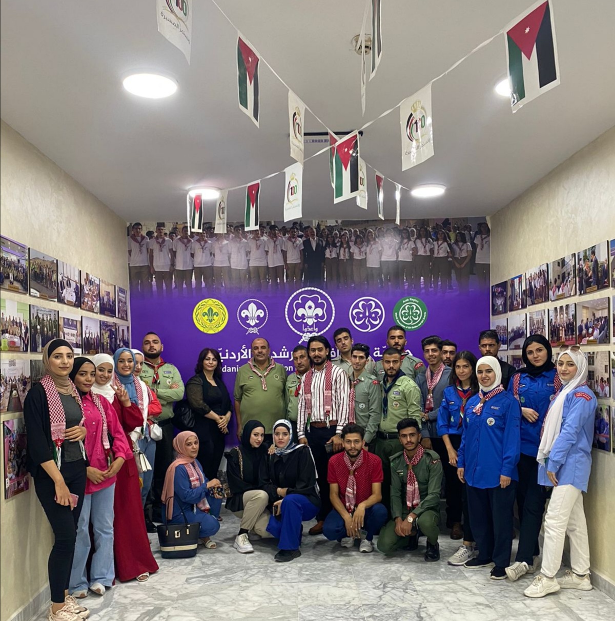 الشرق الأوسط نيوز : جوالة وجولات جامعة اليرموك تقوم بزيارة لجمعية الكشافة والمرشدات الأردنية حيث استمعت لعرض من القائد خليل العمايرة / مدير الجمعية عن البرامج والأنشطة التي تنفذها الجمعية على المستوى الوطني والعالمي والهيكل التنظيمي للجمعيه ونبذه عن تاريخ تأسيس الحركة الكشفية والإرشادية الأردنية والتأكيد على توجيهات سمو الأميرة بسمة بنت طلال رئيسة الجمعيه بالاهتمام ببرامج الشباب واشراكهم في صنع واتخاذ القرار بالعمل الكشفي والإرشادي مبرزا الدور الكبير الذي يقوم به الأمين العام للجمعية السيد مازن كمال الحمود بتمثيل الشباب في كافة اللجان والمفوضيات الفنية للجمعية وتقديم كافة وسائل الدعم لمشاركة الشباب في الأنشطة والبرامج العربية والعالمية وتشكيل لجنة خاصة بالشباب من الجنسين ضمن اللجان العاملة بالجمعيه تهتم وتختص بجميع جوانب تطوير العمل الشبابي كون الفئات المستهدفة من قبل الجمعيه والحركه الكشفية والارشاديه هم الشباب