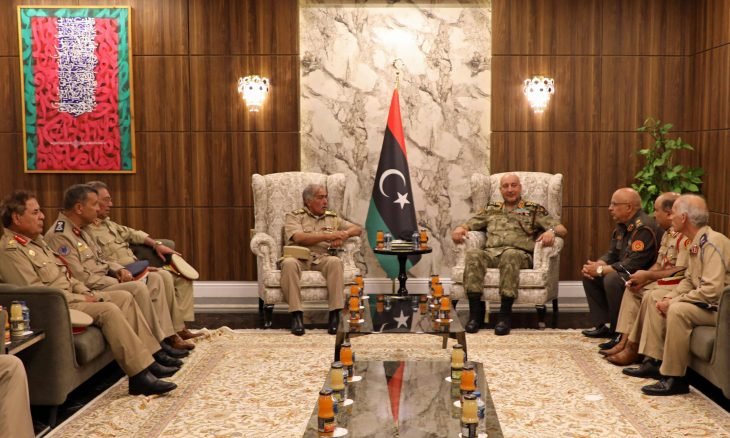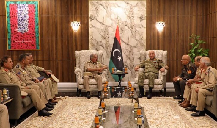 واستمرت اجتماعات الناظوري والحداد مع أعضاء اللجنة العسكرية المشتركة 5+5 وعدد من مديري الإدارات والهيئات العسكرية، على مدار يومان وصدر بيان عقب الاجتماع تحت عنوان “بيان مشترك لقيادات المؤسسة العسكرية للجيش الليبي”.
