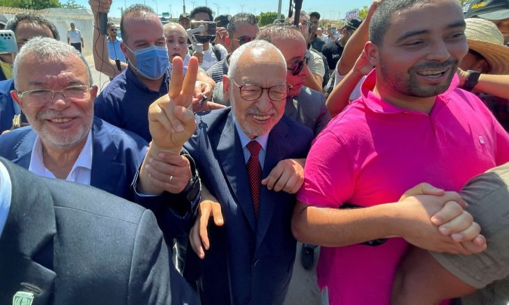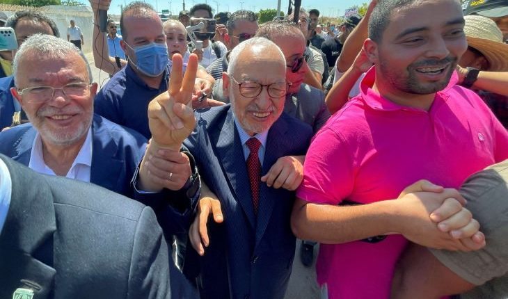 الشرق الأوسط نيوز : فخورون بمحاكمتنا وواثقون من براءتنا” عبارة رددها رئيس حركة النهضة، راشد الغنوشي، عقب خروجه من جلسة تحقيق يرى عدد كبير من التونسيين أنها حلقة جديدة من مسلسل استهداف الرئيس قيس سعيد لمعارضي مساره “الانقلابي” على الديمقراطية التي تعيشها البلاد منذ أكثر من عقد.