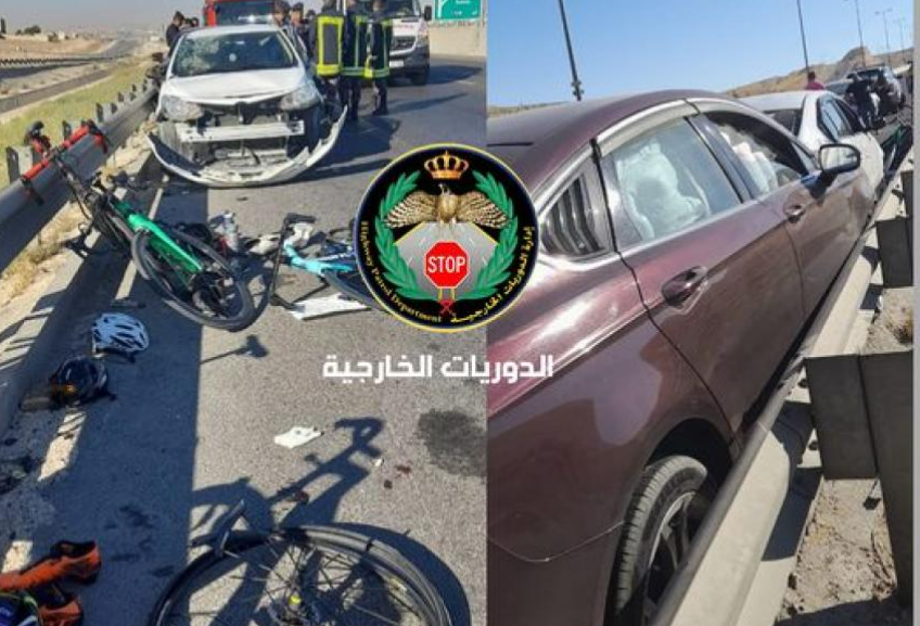 الشرق الأوسط نيوز : تعاملت الدوريات الخارجية صباح اليوم مع حادث تصادم بين مركبتين و5 دراجات هوائية ما بعد جسر الموقر باتجاه الزرقاء، نجم عن الحادث 5 إصابات تم اسعافهم الى المستشفى وحالتهم العامة متوسطة.
