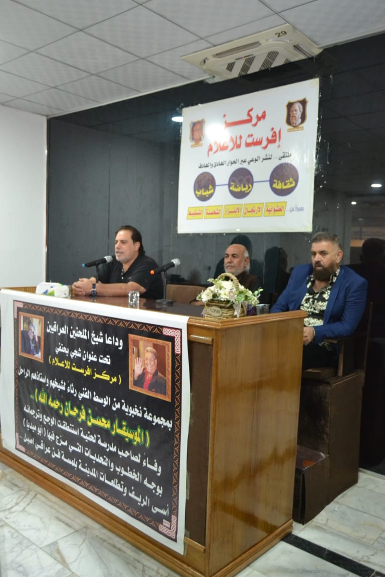 الشرق الأوسط نيوز : أقام مركز افرست للاعلام حفلا تابينيا بمناسبة رحيل شيخ الملحنين العراقيين الأستاذ محسن فرحان أبو ميديا رحمه الله .. بمنهاج عامر احياه نخبة من الفنانين المقربين وطلاب مدرسته الذين عاشروه وعاصروه ونهلوا من معارفه الموسيقية خلال عقود خلت مع ادباء واكاديميين ورياضيين من محبي الفن العراقي .. وذلك في مقر المركز الكائن قرب جسر الصرافية الذي أكتظ بالضيوف الكرام ممن عبروا عن بالغ حزنهم لرحيل اخر جيل كبار ملحني الانشودة والموسيقى .. وقد أشاد الحضور بدور الراحل وفضله على الالحان العراقي بعد ان استطاع وخلال عقود خلت ان يرسخ فيه ذلك الحزن العميق الشجي الذي عاشه في مدينته كربلاء لينقله الى اعمال اللحن والموسيقى حيث تمكن وانفرد فرحان بان تكون الحانه من الاعمال التي يتغنى بها العراقيين في افراحهم واتراحهم .. وتلك ميزة وظفها بعبقرية مهنية فضلا عن احساس عالي بالوجع العراقي والقضية التي عاشها خلال حقب متعددة ..
