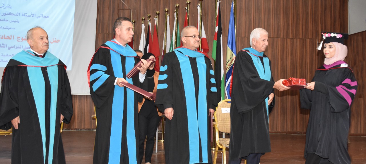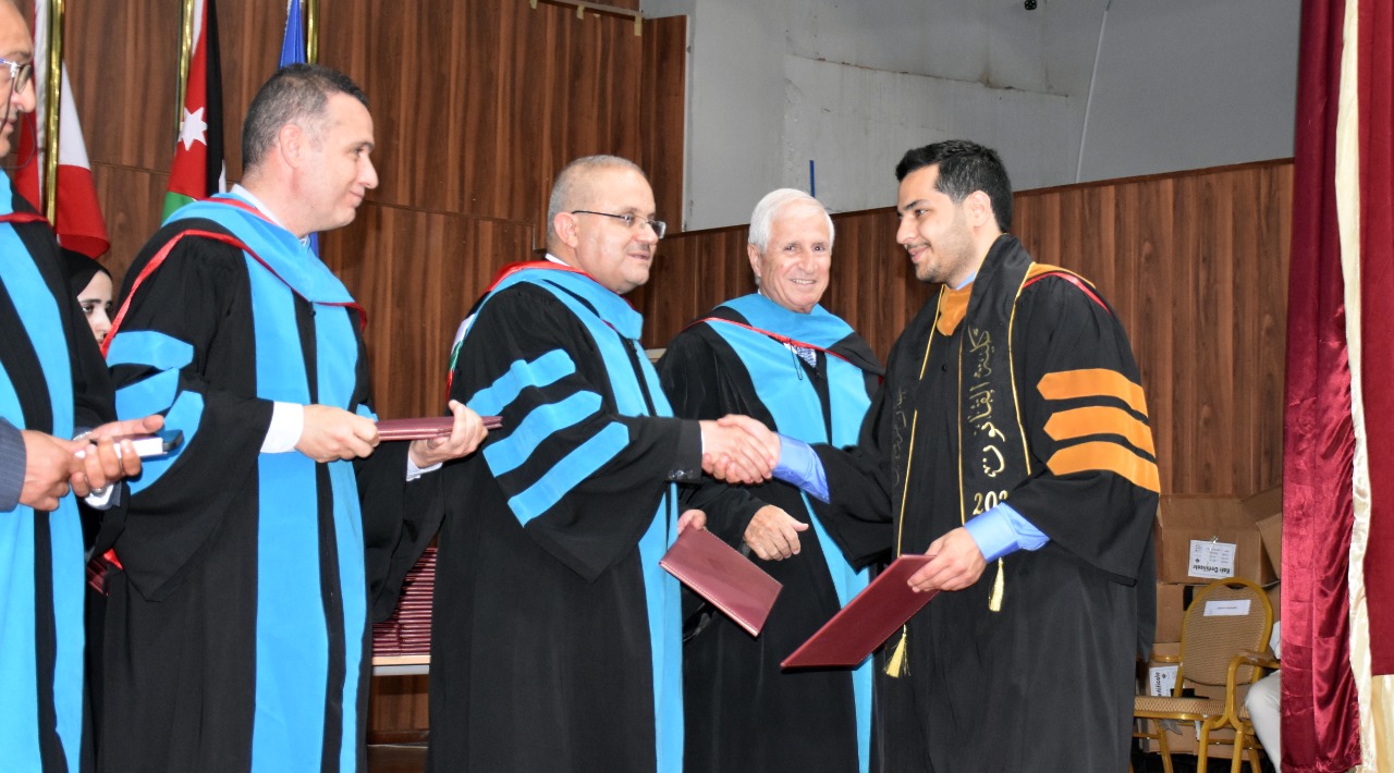 وأضاف عبيدات “ها أنتم على وشك مغادرة هذه الجامعة الأنموذج اعلموا أن مشوارَ العلم طويل وعليكم الاستزادة لتكونوا سفراء للجامعة وتحافظوا على سمعتها بالإنجاز والإخلاص والوفاء للوطن ولقيادته الهاشمية ولذويكم، ونرجو الله مخلصين لكم حياة ملؤها الحفاظ على وتيرة الانجاز والتميز، وممزوجة بأخلاقنا وقيمنا وأصالتنا. وأثنى على أولياء الامور “.