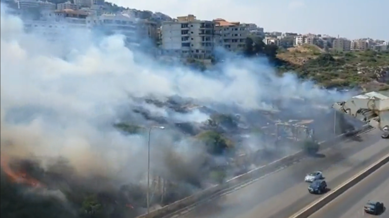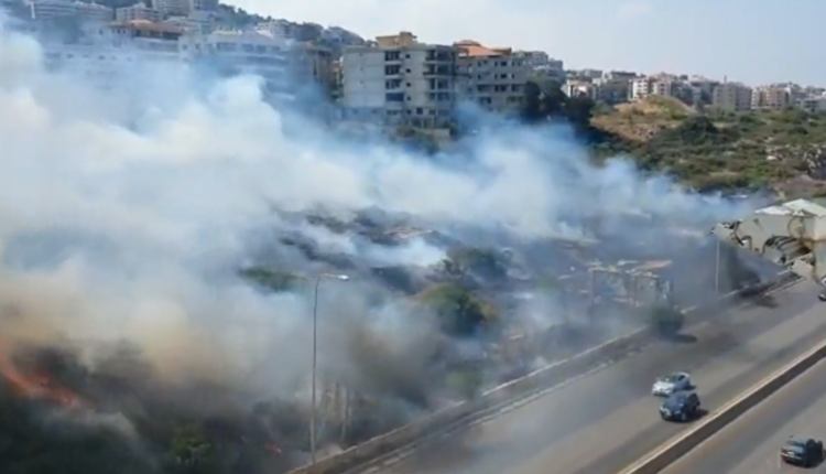 لبنان..اندلاع حريق كبير على أوتوستراد خلدة (فيديو)